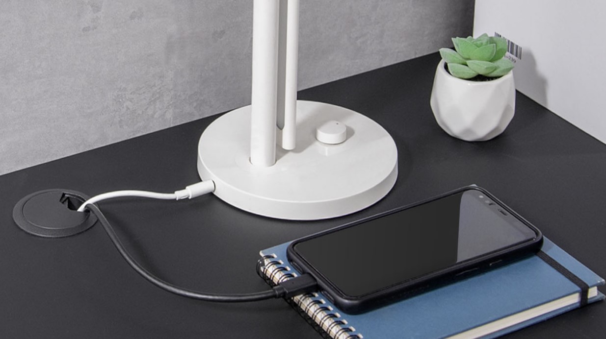 Впорядковуйте кабелі за допомогою кабельної втулки в стільниці.